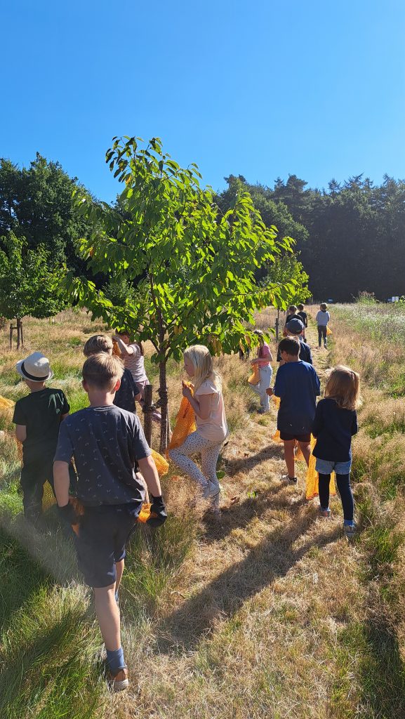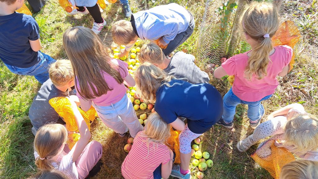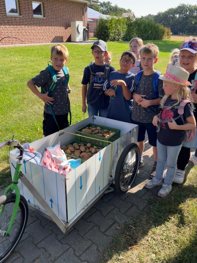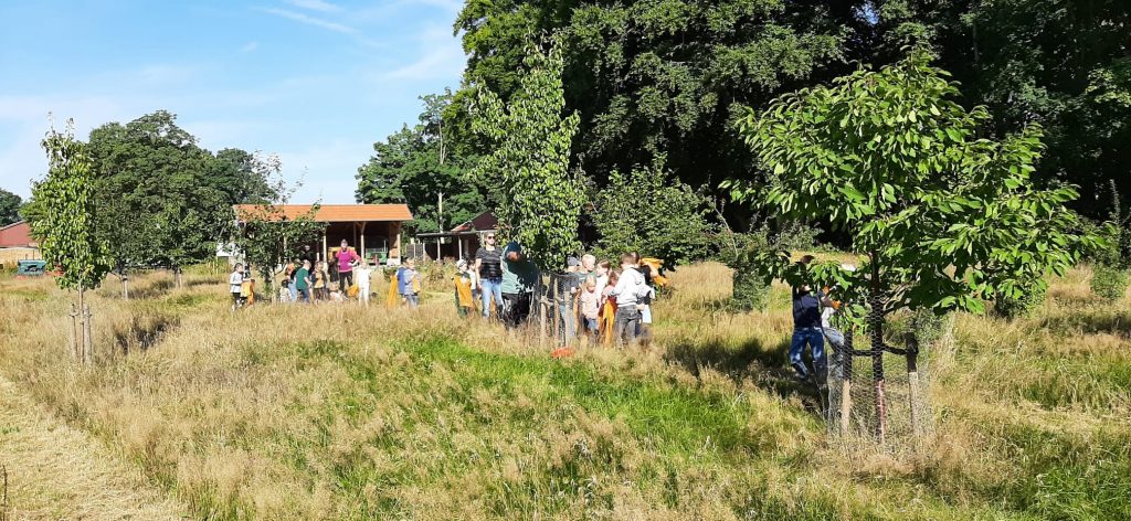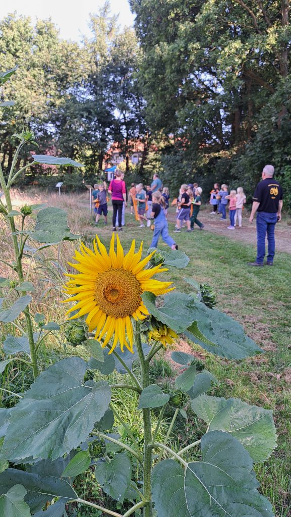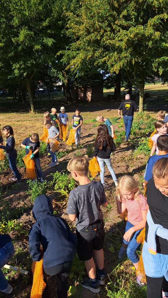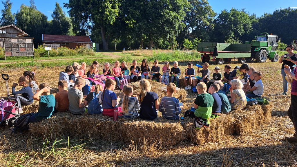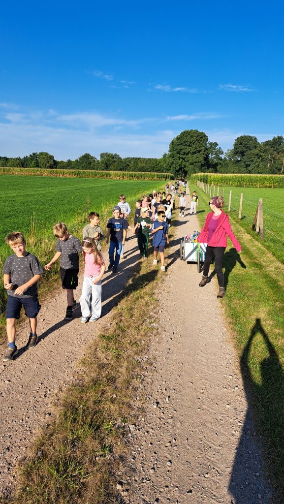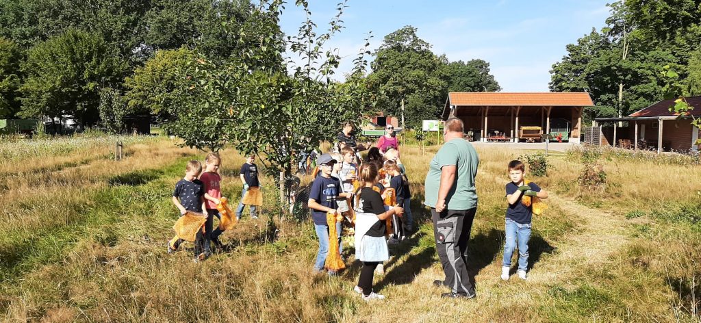 Rudi Schlangen, Franz Meyer und Gerd Deimann führten die Kinder durch die Anlage und wurden dabei durch die Lehrkräfte Frau Roth und Frau Klingenburg unterstützt. Dabei erklärten sie anschaulich, welche Obstbäume auf dem Gelände wachsen und welche Feldfrüchte angebaut werden. „Uns ist es wichtig, den Kindern zu zeigen, wie Landwirtschaft funktioniert und woher unsere Lebensmittel kommen“, so einer der Vereinsmitglieder.