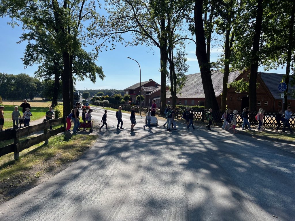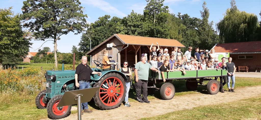 Am 26. August 2025 hatten die Oldtimer-Treckerfreunde Berßen besonderen Besuch: Die Klassen 2a und 2b der Grundschule Süd-Hümmling wanderten vom Schulstandort in Klein Berßen zum Vereinsgelände der Oldtimer-Treckerfreunde in Groß Berßen. Für die Treckerfreunde war es eine Freude, nach den Kindergartenkindern nun auch den Grundschülerinnen und -schülern nicht nur die alten Fahrzeuge zu zeigen, sondern auch die Natur rund um das Clubgelände näherzubringen.